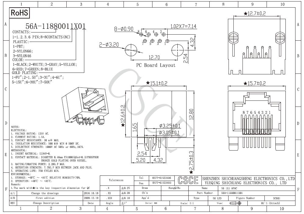 | 13. Contact Mating Area Plating | Gold/3u"/6u"/15u"/30u" |
