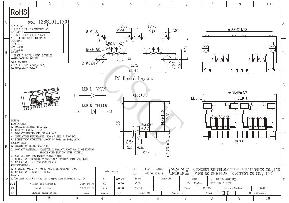 56 LED 1*2 8P8C D型