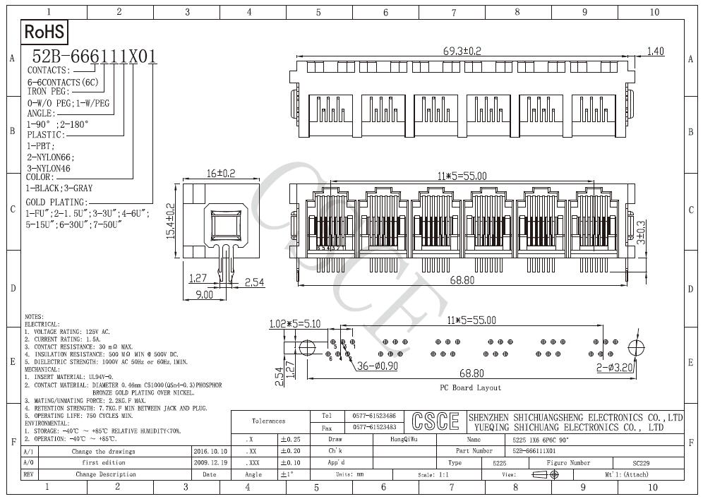 5225 1*6 6P6C 90°