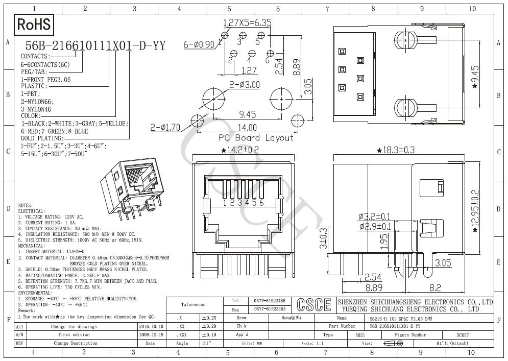 5621S-H 1*1 6P6C F3.05 D型